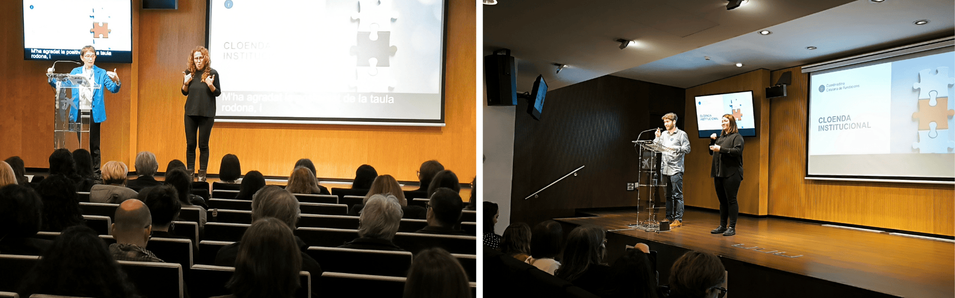 La jornada s’ha tancat amb les intervencions institucionals d’Eugènia Bieto, presidenta de la Coordinadora Catalana de Fundacions, i Jordi Oliva, de la Subdirecció General d’Accessibilitat del Departament de Drets Socials i Inclusió.